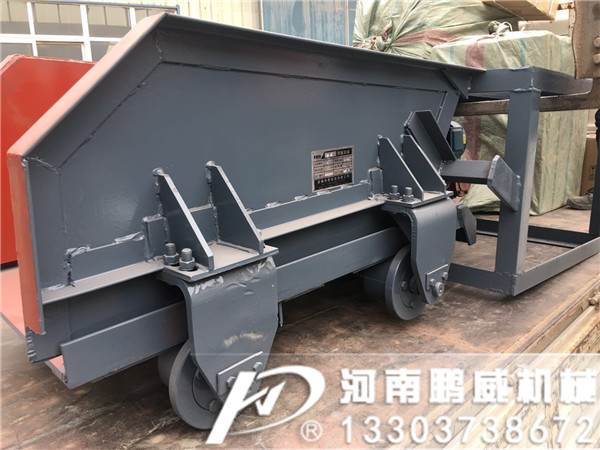 利用曲柄連桿機構(gòu)拖動下傾5°的底板在輥上做直線往復(fù)運動,當(dāng)電動機開動后,經(jīng)彈性聯(lián)軸器、減速器、曲柄連軒機構(gòu)拖動傾斜的底板在插輥上作直線往復(fù)運動,將煤均勻地卸到運輸機械或其它篩選設(shè)備上。從而把煤或其它磨琢性小,粘性不大的松散粒狀,粉狀物料從給料設(shè)備中均勻地卸到受料設(shè)備中。