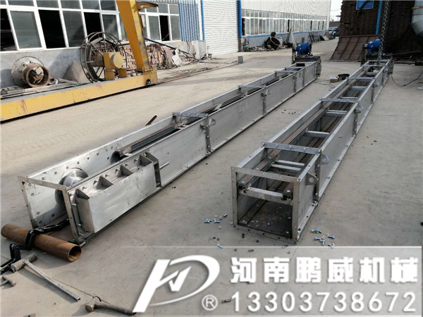鵬威機械生產的刮板輸送機分為水平刮板機,傾角刮板機,Z型刮板機等多型號刮板輸送機,可以非標定制,做耐高溫處理等。輸送原理:散料具有內磨擦和側壓力的特征,它在機槽內受到輸送鏈運動方向的拉力。其內部壓力增加,散料間的內磨擦力增大。當散料間的內磨擦力大于物料與機槽壁間的外磨擦力時,物料就隨著輸送鏈一起運行。當料層高度與機槽寬度的比值滿足一定條件時,料流是穩定的。鏈式輸送機的設備選用。具有設計合理、使用壽命長、運轉可靠、節能高效、密封、安全且維修方便等優點,深受廣大用戶歡迎。