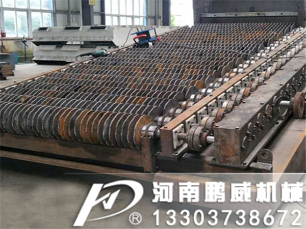 石灰石輥軸篩由多組同向轉(zhuǎn)動的篩軸組成,篩軸上裝有若干篩片,相鄰篩軸上的篩片相互交叉組成篩孔,小于篩孔的物料在運(yùn)轉(zhuǎn)過程中透篩,大于篩孔的塊狀料在篩片上滾動從出料口排除。新型石灰石輥軸篩顛覆傳統(tǒng)篩分概念,適用篩分煤種,特別是高水分、高黏性、泥化嚴(yán)重的煤種,具有脫泥效率的優(yōu)勢,將成為代替?zhèn)鹘y(tǒng)篩分設(shè)備的新一代篩分機(jī)。滾軸篩的篩面由很多根平行排列的、其上交錯地裝有篩盤的輥軸組成,滾軸通過鏈輪或齒輪傳動而旋轉(zhuǎn),其轉(zhuǎn)動方向與物料流動方向相同。為了使篩上的物料層松動以便于透篩,篩盤形狀有偏心的和異形的。為防止物料卡住篩軸,裝有安全保險裝置。滾軸篩全部為座式,有左傳動和右傳動之分,又分帶走輪和不帶走輪的,帶走輪的可在鋼軌上移動。
