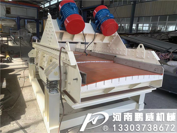 鵬威機(jī)械生產(chǎn)的高頻脫水篩主要作用是脫水、脫泥、脫介,可用于砂石料廠水洗砂、選煤廠煤泥回收、選礦廠尾礦干排等,因此也叫砂石脫水篩、礦用脫水篩、煤泥脫水篩、尾礦脫水篩、高頻脫水篩等。尾礦干排、水洗砂、煤泥脫水、細(xì)沙回收機(jī)、土壤修復(fù)、泥漿處理、污水處理等。高頻脫水篩結(jié)構(gòu)合理,獨(dú)特新穎,采用振動(dòng)電機(jī)作激振源,物料進(jìn)行拋擲運(yùn)動(dòng),達(dá)到篩分處理的目的,主要用于細(xì)小或微小物料的分級(jí)和脫水以及煤泥回收,特別適用于板框壓濾機(jī)系統(tǒng)前的煤泥脫水。